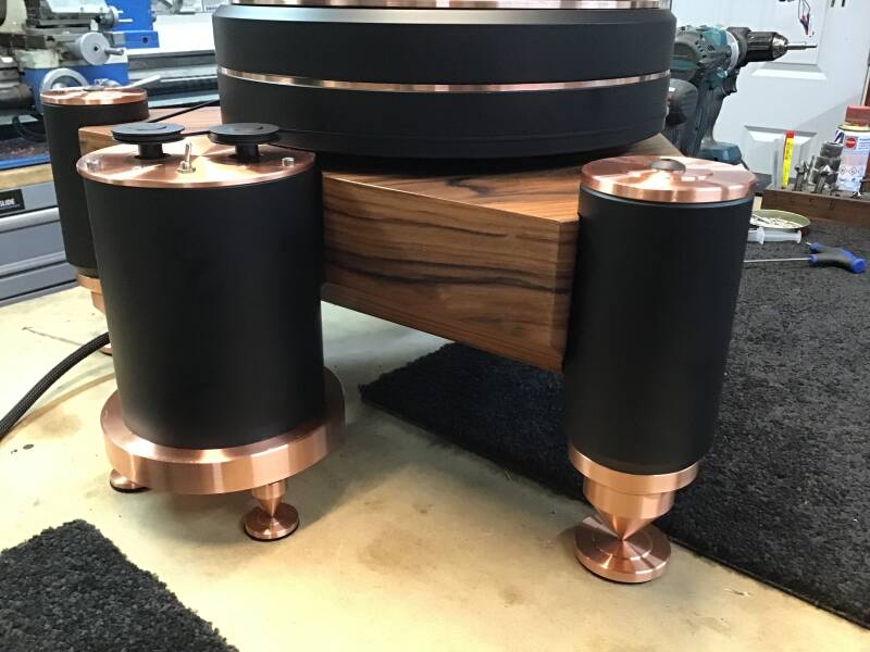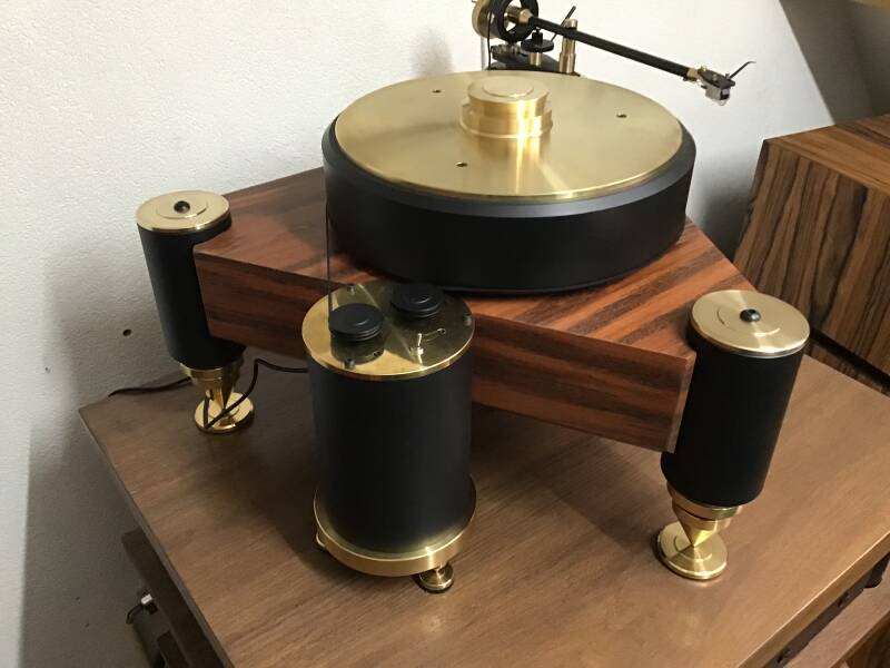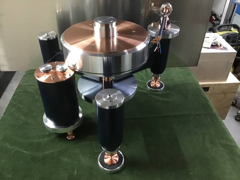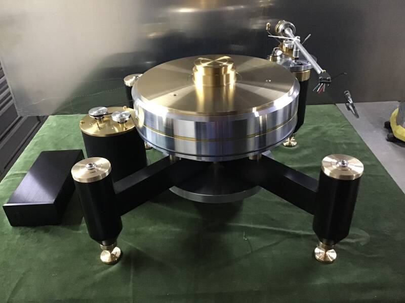 Het totale gewicht van het in aluminium en messing vervaardigde kleinste loopwerk is ca.23 kg waarvan het 40 mm dikke plateau 8,5 kg weegt.De hoogte is ca. 28cm en kan in alle RAL kleuren geleverd worden en vrijwel elk type arm kan worden gemonteerd op een in huis gemaakte armbase.