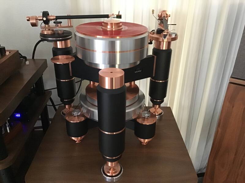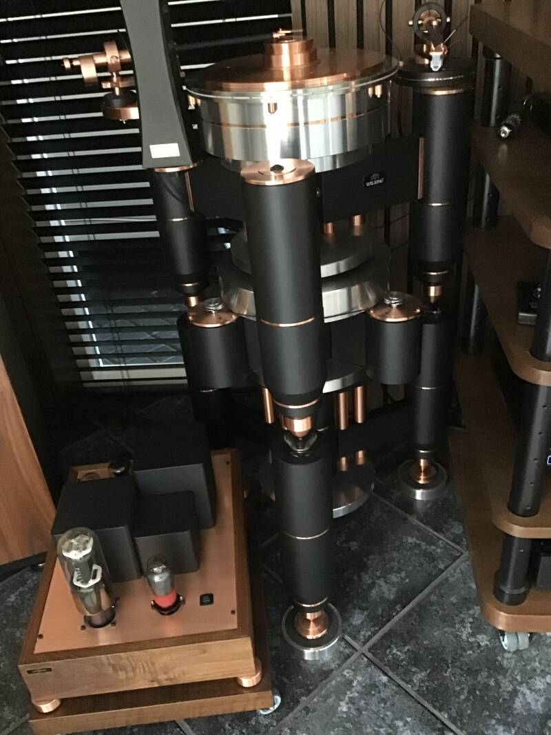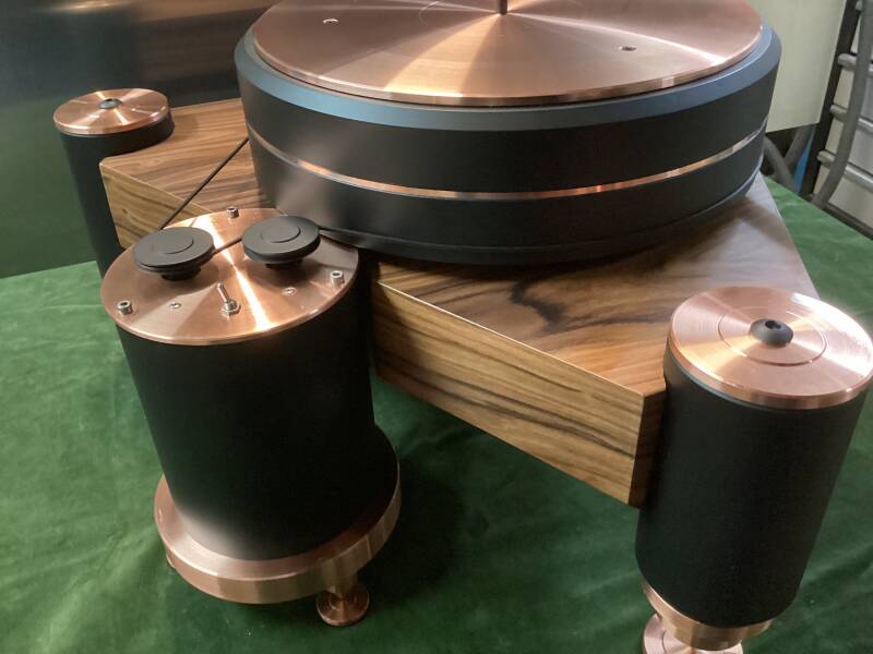 De 40 cm hoge Lamed weegt totaal ca.32 kg.waarvan het 70 mm dikke plateau 14 kg voor zijn rekening neemt,het chassis is opgetrokken uit massief aluminium met naar keuze messing of koperen details.